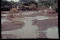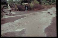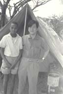 雨期の雨でチェムチェムが増水し基地にも浸水(見守る梅棹忠夫)(N.H.)