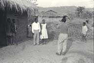 村びとの写真を取る梅棹忠夫(後ろ向き)(N.H.)
