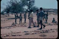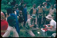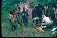 しとめられた動物をみる子どもたち(中央は河端繁)(N.H.)