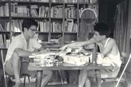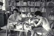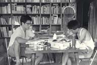 基地室内光景(打ち合わせ中、手前豊嶋顕達、右村上進)(N.H.)